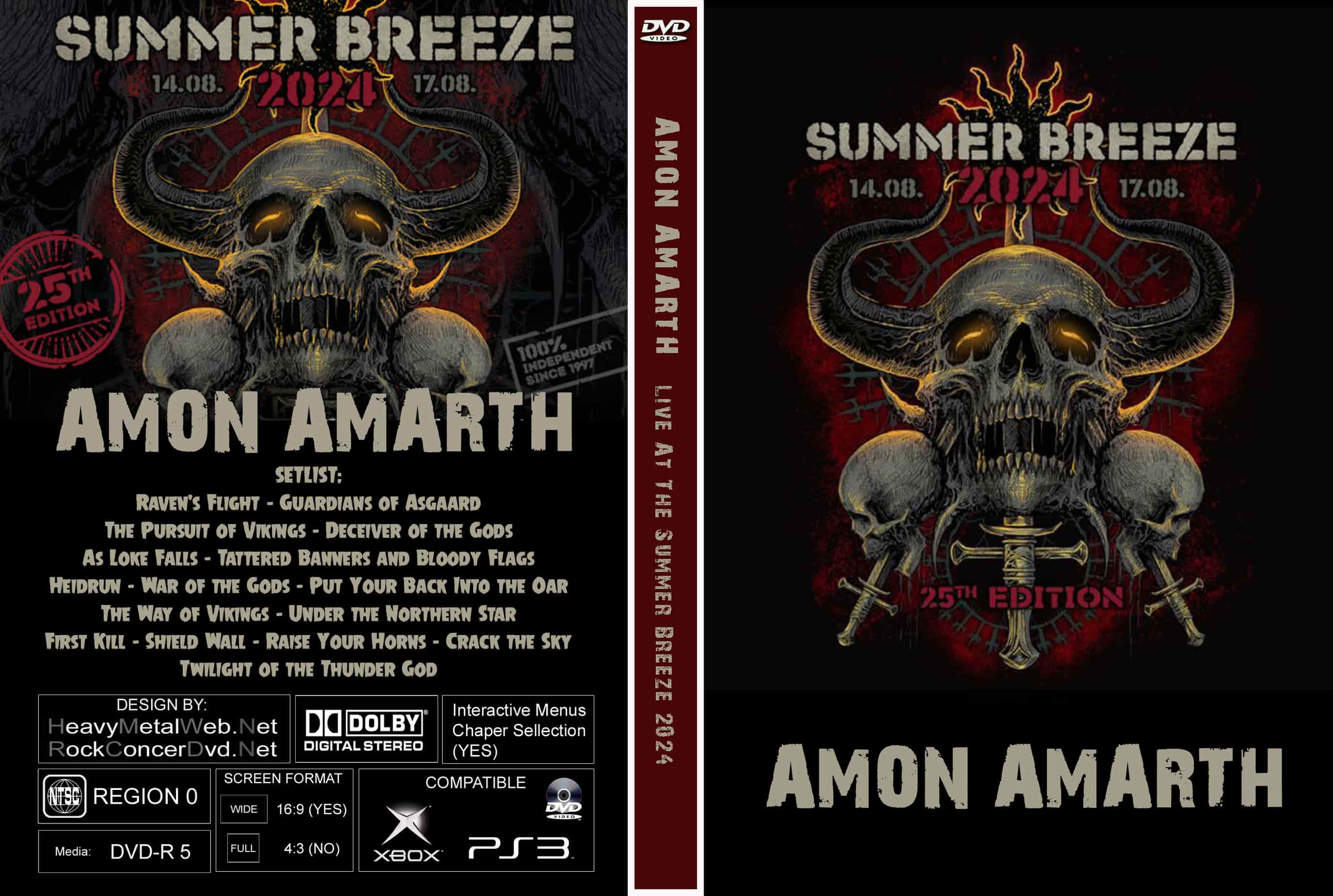 | AMON AMARTH Live At The Summer Breeze 2024 DVD DVD Format: NTSC Source: Professional Shot (Multi- Camera) Video Quality: Rating: 9.0 Menus: Yes Chapter Selection: Every 5 Min. WideScreen: Yes HD: Yes Total Running Time: 88 Min. SETLIST: Raven's Flight Guardians of Asgaard The Pursuit of Vikings Deceiver of the Gods As Loke Falls Tattered Banners and Bloody Flags Heidrun War of the Gods Put Your Back Into the Oar The Way of Vikings Under the Northern Star First Kill Shield Wall Raise Your Horns Crack the Sky Twilight of the Thunder God |