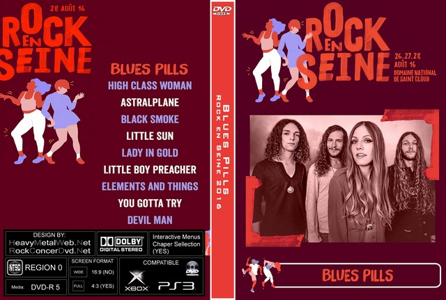 | BLUES PILLS Rock en Seine, France 08/28/2016 DVD DVD Format: NTSC Source: Pro-Shot (Multi Camera) Video Quality: Rating: 9.0 Menus: Yes Chapter Selection: Yes Widescreen: Yes HD: Yes Total Running Time: 50 Min. SETLIST: High Class Woman Astralplane Black Smoke Little Sun Lady in Gold Little Boy Preacher Elements and Things You Gotta Try Devil Man |