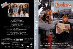 | BONHAM Live At The Button South, Hallandale Beach. FL 02-25-1990 DVD DVD Format: NTSC Source: Audience Shot (Single- Camera) Video Quality: Rating: 8.0 Menus: No Chapter Selection: Every 5 Min WideScreen: Yes HD: No Total Running Time: 76 Min. SETLIST: 1."Just Another Day" 2."Holding on Forever" 3."Cross Me and See" 4."Bringing Me Down" 5."Playing to Win" (includes I'm Ready / Rock and Roll medley) 6."Guilty" 7."Come Together" (Beatles cover) 8."Dreams" 9."The Disregard of Timekeeping" 10."Wait for You" 11."Black Dog" (Led Zeppelin cover) Daniel MacMaster - lead & backing vocals, keyboard Ian Hatton - lead & rhythm guitars, backing vocals John Smithson - bass, keyboards, violin, backing vocals Jason Bonham - drums, percussion, backing vocals |