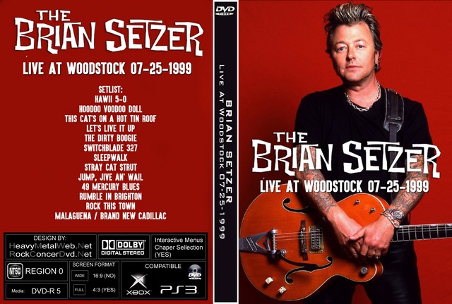 | BRIAN SETZER Live At Woodstock 07-25-1999 DVD DVD Format: NTSC Source: Pro-Shot (Multi Camera) Video Quality: Rating: 8.5 Menus: Yes Chapter Selection: Every 5 Min. Full Screen: Yes HD: No Total Running Time: 57 Min. SETLIST: Hawii 5-0 Hoodoo Voodoo Doll This Cat's On A Hot Tin Roof Let's Live It Up The Dirty Boogie Switchblade 327 Sleepwalk Stray Cat Strut Jump, Jive An' Wail 49 Mercury Blues Rumble In Brighton Rock This Town Malaguena / Brand New Cadillac |