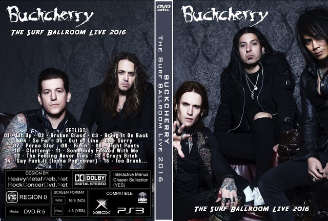 | BUCKCHERRY The Surf Ballroom Live 2016 DVD DVD Format: NTSC Source: Professional-Shot (Multi Camera) Video Quality: Rating: 9.0 Menus: No Chapter Sellection: Skip Every 5 Min. Widescreen: Yes HD: Yes Total Running Time: 79 Min. SETLIST: 01 - Lit Up 02 - Broken Glass 03 - Bring It On Back 04 - So Far 05 - Out of Line 06 - Sorry 07 - Porno Star 08 - Ridin' 09 - Tight Pants 10 - Gluttony 11 - Somebody Fucked With Me 12 - The Feeling Never Dies 13 - Crazy Bitch 14 - Say Fuck It (Icona Pop cover) 15 - Too Drunk... |