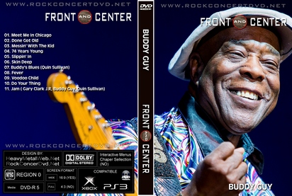 | BUDDY GUY Front & Center 2013 DVD DVD Format: NTSC Source: Professional-Shot (Multi Camera) Video Quality: Rating: 9.0 Menus: No Chapter Selection: Skip Every 5 Min. Widescreen: Yes HD: Yes Total Running Time: 55 Min. SETLIST: 01. Meet Me In Chicago 02. Done Got Old 03. Messin' With The Kid 04. 74 Years Young 05. Slippin' In 06. Skin Deep 07. Buddy's Blues (Quin Sullivan) 08. Fever 09. Voodoo Child 10. Do Your Thing 11. Jam ( Gary Clark J.R, Buddy Guy, Quin Sullivan) |
