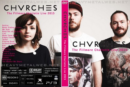 | CHVRCHES The Fillmore Charlotte Live 2015 DVD DVD Format: NTSC Source: Professional-Shot (Multi Camera) Video Quality: Rating: 9.0 Menus: No Chapter Selection: Skip every 5 minuts Widescreen: Yes HD: Yes Total Running Time: 60 Min. Setlist: Never Ending Circles We Sink Keep You on My Side Lies Make Them Gold Empty Threat Tether Playing Dead Science/Visions Gun Bury It Under the Tide Recover Leave a Trace Clearest Blue Encore: Afterglow The Mother We Share |