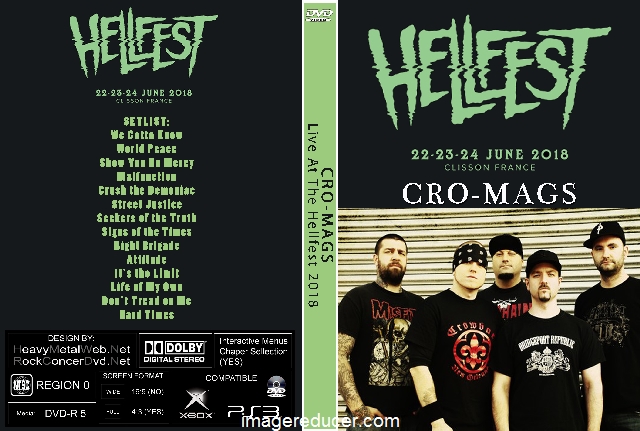 | CRO-MAGS Live At The Hellfest 2018 DVD DVD Format: NTSC Source: Pro-Shot (Multi Camera) Video Quality: Rating: 8.5 Menus: Yes Chapter Selection: Every 5 Min. Widescreen: Yes HD: No Total Running Time: 42 Min. SETLIST: We Gotta Know World Peace Show You No Mercy Malfunction Crush the Demoniac Street Justice Seekers of the Truth Signs of the Times Right Brigade Attitude It's the Limit Life of My Own Don't Tread on Me Hard Times |