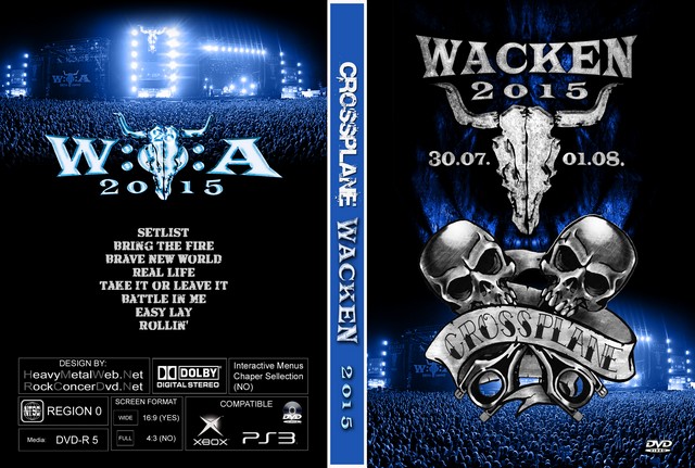 | CROSSPLANE Live At Wacken Open Air 2015 DVD DVD Format: NTSC Source: Pro-Shot (Multi Camera) Video Quality: Rating: 9.0 Menus: No Chapter Selection: Every 5 Min. Widescreen: Yes HD: Yes Total Running Time: 33 Min. SETLIST: Bring the Fire Brave New World Real Life Take It or Leave It Battle in Me Easy Lay Rollin' |