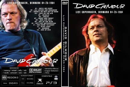 | DAVID GILMOUR Live Copenhagen, Denmark 04/25/1984 DVD DVD Format: NTSC Source: Audience Shot (Single Camera) Video Quality: Rating: 7.8 Menus: Yes Chapter Selection: Yes Widescreen: Yes HD: No Total Running Time: 85 Min. Until We Sleep All Lovers Are Deranged There's No Way Out of Here Love On The Air Mihalis Cruise Short and Sweet Run Like Hell Out Of The Blue Let's Get Metaphysical You Know I'm Right Blue Light Murder End of dvd |