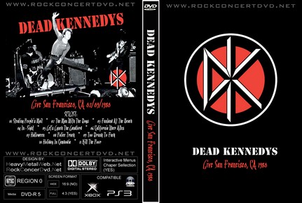 | DEAD KENNEDYS Live San Francisco, CA 02/09/1980 DVD DVD Format: NTSC Source: Professional-Shot (Multi Camera) Video Quality: Rating: 8.0 Menus: Yes Chapter Sellection: Yes Widescreen: No HD: No Total Running Time: 33 min SETLIST: 01 Stealing People's Mail 02 The Man With The Dogs 03 Funland At The Beach 04 In-Sight 05 Let's Lynch The Landlord 06 California Uber Alles 07 Halloween 08 Police Truck 09 Too Drunk To Fuck 10 Holiday In Cambodia 11 Kill The Poor |