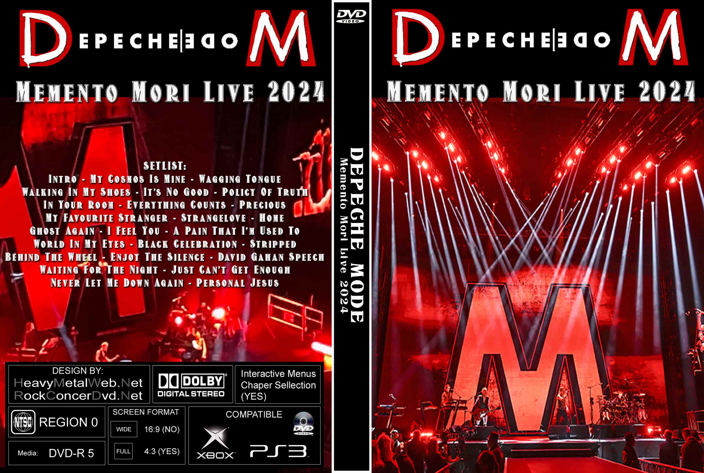 | DEPECHE MODE Memento Mori Live 2024 DVD DVD Format: NTSC Source: Audience Shot (MultiCam Excellent) Video Quality: Rating: 9.0 Menus: No Chapter Selection: Every 5 Min. Widescreen: Yes HD: Yes Total Running Time: 129 Min. SETLIST: Intro My Cosmos Is Mine Wagging Tongue Walking In My Shoes It’s No Good Policy Of Truth In Your Room Everything Counts Precious My Favourite Stranger Strangelove Home Ghost Again I Feel You A Pain That I’m Used To (Jacques Lu Cont Remix) World In My Eyes Black Celebration Stripped Behind The Wheel Enjoy The Silence David Gahan Speech Waiting For The Night Just Can’t Get Enough Never Let Me Down Again Personal Jesus |