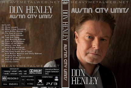 | DON HENLEY Austin City Limits 2015 DVD DVD Format: NTSC Source: Professional-Shot (Multi Camera) Video Quality: Rating: 9.0 Menus: No Chapter Selection: Skip every 5 minuts Widescreen: Yes HD: Yes Total Running Time: 52 Min. SETLIST: 01. Dirty Laundry 02. When I Stop Dreaming - with Ashley Monroe 03. The Cost of Living - with Jamey Johnson 04. That Old Flame - with Martina McBride 05. Train in the Distance 06. Heart of the Matter 07. Where I Am Now - with Trisha Yearwood 08. Take a Picture of This 09. She Sang Hymns Out of Tune - with Martie Maguire and Emily Robison 10. Praying For Rain - with all of the special guests 11. Boys of Summer 12. closing credits MUSICIANS: Don Henley - vocals, guitar Will Hollis - keyboards, vocals Steuart Smith - guitar, keyboards, vocals Scott Crago - drums, percussion Michael Thompson - keyboards, guitar, vocals Lance Morrison - bass Chris Holt - guitar, vocals Milo Deering - pedal steel, guitar Lara Johnston - background vocals Lily Elise - background vocals Erica Swindel - background vocals, violin Dana Hamilton - hammered dulcimer Bonnie Carol - hammered dulcimer |