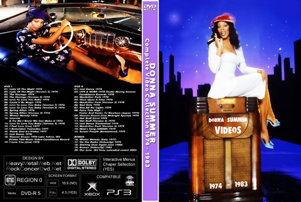 | DONNA SUMMER Complete Video Collection 1974 - 1983 (2 DVDs) DVD Format: NTSC Source: Professional Shot (Multi Camera) Video Quality: Rating: 8.0 Menus: Yes Chapter Selection: Yes Widescreen: No HD: No Total Running Time: 172 Min. DVD 1 Lady Of The Night 2x The Hostage 2x Love You Love You Baby Could It Be Magic Love To Love You Baby 2x Spring Affair 2x Winter Melody Interview Try Me, I Know We Can Make It Love You Love You Baby I Feel Love I Remember Thank God It's Friday Last Dance Heaven Knows I Love You DVD 2 Last Dance Live & More Macarthur Park Bad Girls Dim All The Lights Fairy Talk High Heaven Knows Hot Stuff 2x Last Dance Macarthur Park Mimi's Song Sunset People Winter Melody On The Radio Starting Over Romeo Our Love |