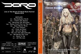 | DORO Live at The Heroes Of World Rock Festival, Russia 2018 DVD DVD Format: NTSC Source: Professional Shot (Multi Camera) Video Quality: Rating: 9.0 Menus: Yes Chapter Selection: Yes Widescreen: Yes HD: Yes Total Running Time: 61 Min. SETLIST: 01 - Earthshaker Rock 02 - I Rule The Ruins 03 - Burning The Witches 04 - Raise Your Fist In The Air 05 - East Meets West 06 - Fur Immer 07 - True As Steel 08 - All For Metal 09 - We Are The Metalheads 10 - Breaking The Law 11 - Burn It Up 12 - All We Are |