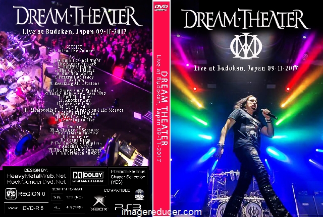 | DREAM THEATER Live at Budokan, Japan 09-11-2017 (2 DVDs) DVD Format: NTSC Source: Pro-Shot (Multi Camera) Video Quality: Rating: 9.0 Menus: Yes Chapter Selection: Yes Widescreen: Yes HD: Yes Total Running Time: 150 Min. SETLIST: 1. Intro: The Colonel (Two Steps From Hell song) Act 1: 2. The Dark Eternal Night 3. The Bigger Picture 4. Hell’s Kitchen 5. The Gift of Music 6. Our New World 7. Portrait of Tracy (Jaco Pastorius cover) (John Myung solo) 8. As I Am (bridged with an excerpt of Metallica's 'Enter Sandman') 9. Breaking All Illusions Act 2 (Images and Words): 10. Intro: Happy New Year 1992 11. Pull Me Under 12. Another Day 13. Take the Time (extended outro with a John Petrucci guitar solo) 14. Surrounded 15. Metropolis Pt. 1: The Miracle and the Sleeper (with a drum solo by Mike Mangini during the middle part) 16. Under a Glass Moon 17. Wait for Sleep 18. Learning to Live Encore: 19. A Change of Seasons: I The Crimson Sunrise II Innocence III Carpe Diem IV The Darkest of Winters V Another World VI The Inevitable Summer VII The Crimson Sunset |
