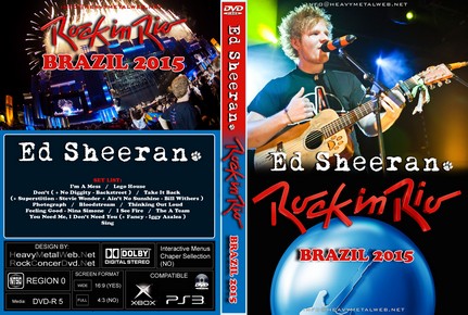 | ED SHEERAN live Rock In Rio Brasil 2015 DVD DVD Format: NTSC Source: Professional-Shot (Multi Camera) Video Quality: Rating: 9.0 Menus: No Chapter Selection: Skip every 5 minuts Widescreen: Yes HD: Yes Total Running Time: 77 Min. SETLIST: I'm A Mess Lego House Don't ( + No Diggity - Backstreet ) Take It Back (+ Superstition - Stevie Wonder + Ain't No Sunshine - Bill Withers ) Photograph Bloodstream Thinking Out Loud Feeling Good - Nina Simone I See Fire The A Team You Need Me, I Don't Need You (+ Fancy - Iggy Azalea ) Sing |