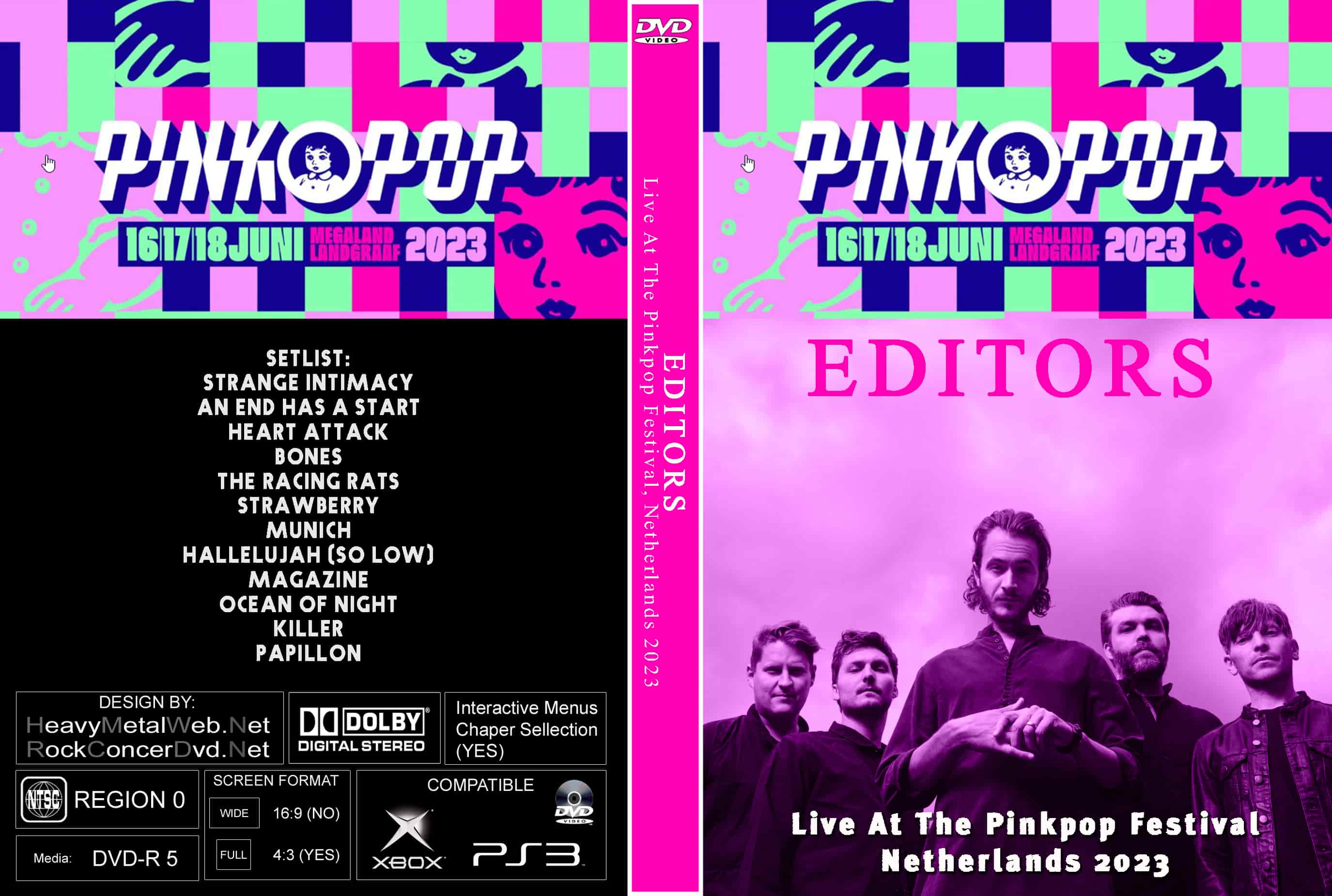 | EDITORS Live At The Pinkpop Festival, Netherlands 2023 DVD DVD Format: NTSC Source: Professional Shot (Multi- Camera) Video Quality: Rating: 9.0 Menus: No Chapter Selection: Skip Avery 5 Min WideScreen: Yes HD: No Total Running Time: 58 Min. SETLIST: Strange Intimacy An End Has a Start Heart Attack Bones The Racing Rats Strawberry Munich Hallelujah (So Low) Magazine Ocean of Night Killer Papillon |