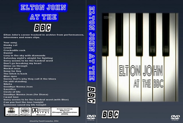 | ELTON JOHN BBC Clips Compilation Documentary DVD DVD Format: NTSC Source: Professional-Shot (Multi Camera) Video Quality: Rating: 8.5 Menus: Yes Chapter Selection: Yes Widescreen: No HD: No Total Running Time: 59 Min. TRACKLIST: Your song Honky cat Levon Crockodile rock Daniel Lucy in the sky with diamonds Saturday night's alright for fighting Sorry seems to be the hardest word Don't go breaking my heart Shine on through Rocket man Song for Guy The bitch is back Blue eyes Guess that's why they call it the blues I'm still standing Nikita Goodbye Norma Jean Sacrifice Circle of life Goodbye Norma Jean (for Diana) I want love Sorry seems to be the hardest word (with Blue) Can you feel the love tonight Someone saved my life tonight |