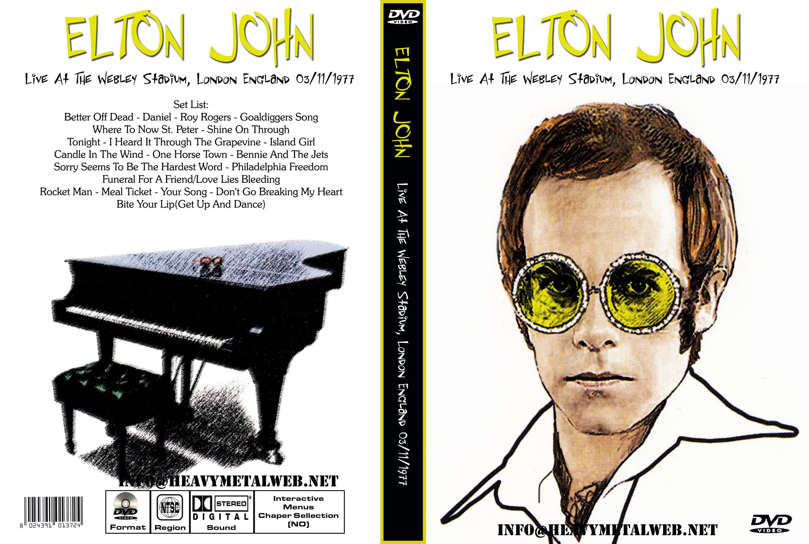 ELTON JOHN Live At The Webley Stadium, London England 03/11/1977 DVD DVD Format: NTSC Source: Professional-Shot (Multi-Camera) Video Quality: Rating: 8.0 Menus: Yes Chapter Selection: Yes Total Running Time: 81 Min Set List: Better Off Dead Daniel Roy Rogers Goaldiggers Song Where To Now St. Peter Shine On Through Tonight I Heard It Through The Grapevine Island Girl Candle In The Wind One Horse Town Bennie And The Jets Sorry Seems To Be The Hardest Word Philadelphia Freedom Funeral For A Friend/Love Lies Bleeding Rocket Man Meal Ticket Your Song Don't Go Breaking My Heart Bite Your Lip(Get Up And Dance) |