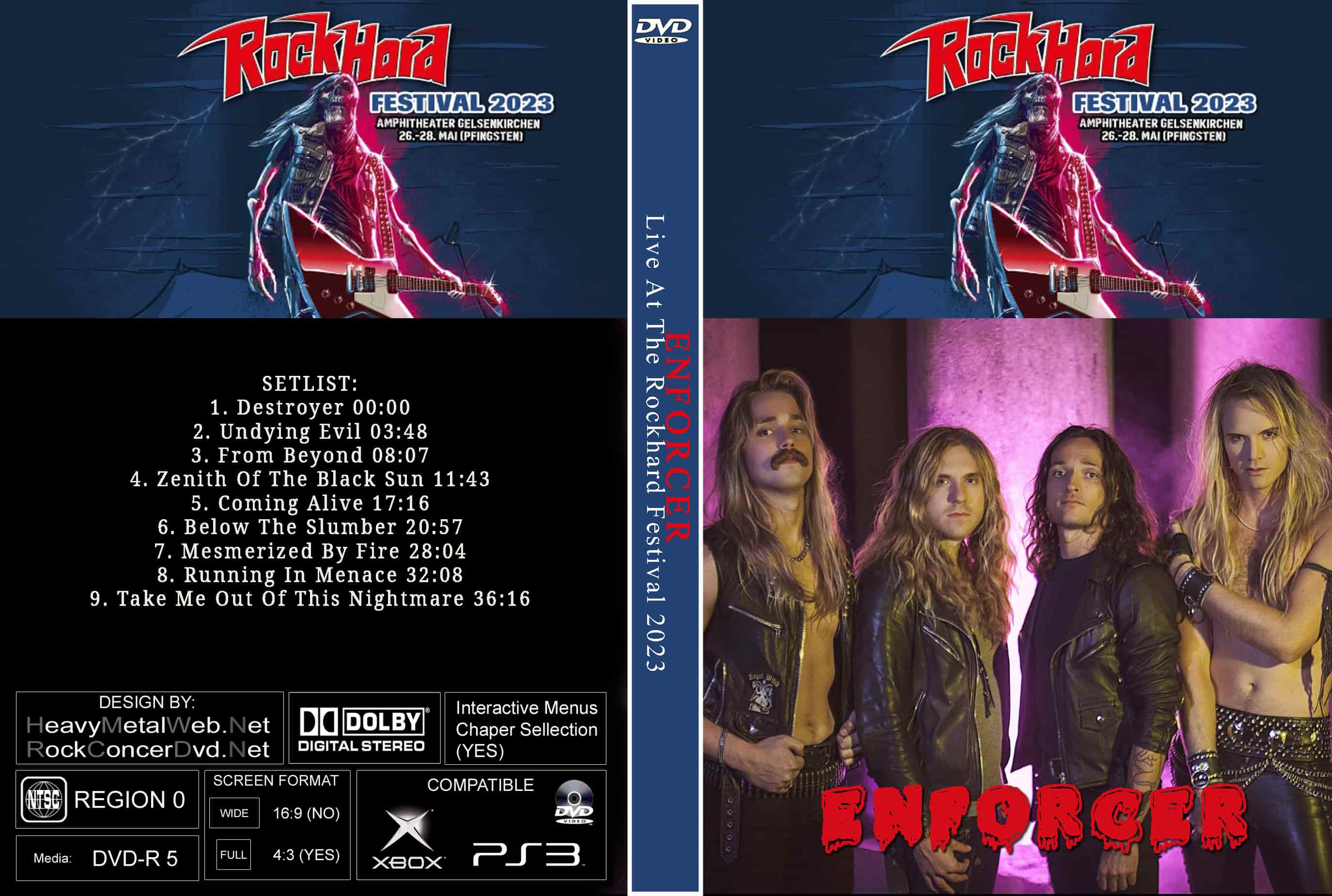 | ENFORCER Live At The Rock Hard Festival 2023 DVD DVD Format: NTSC Source: Professional Shot (Multi- Camera) Video Quality: Rating: 9.0 Menus: Skip Every 5 Min Chapter No WideScreen: Yes HD: Yes Total Running Time: 42 Min. SETLIST: 1. Destroyer 00:00 2. Undying Evil 03:48 3. From Beyond 08:07 4. Zenith Of The Black Sun 11:43 5. Coming Alive 17:16 6. Below The Slumber 20:57 7. Mesmerized By Fire 28:04 8. Running In Menace 32:08 9. Take Me Out Of This Nightmare 36:16 BAND: Olof Wikstrand - vocals, guitar Jonathan Nordwall - guitar Tobias Lindkvist - bass Jonas Wikstrand - drums |