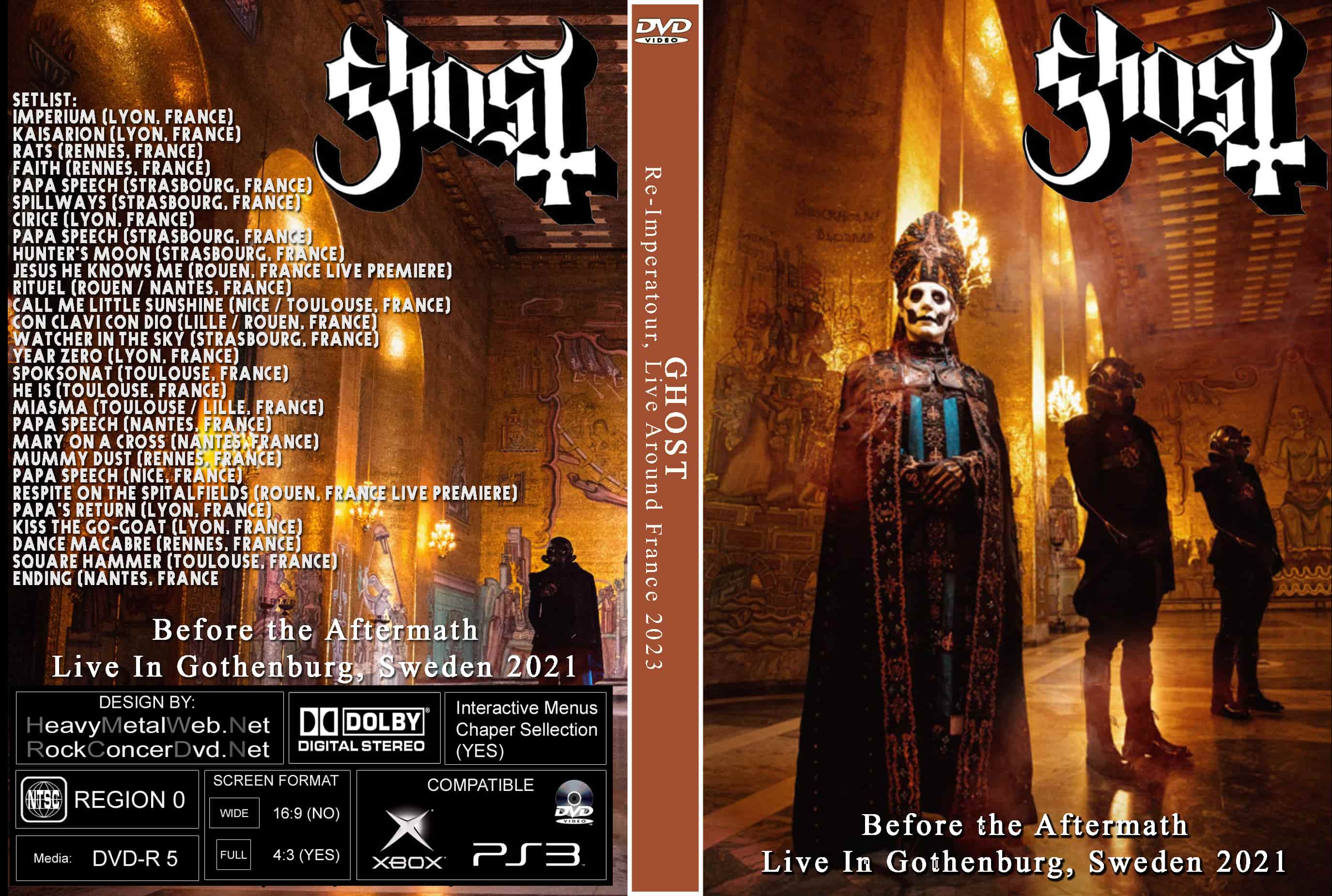 | GHOST Re-Imperatour, Live Around France 2023 (2 DVDs) DVD Format: NTSC Source: Audience Camera (Single- Camera) Video Quality: Rating: 9.0 Menus: No Chapter Selection: Skip Avery 5 Min WideScreen: Yes HD: Yes Total Running Time: 108 Min. SETLIST: Imperium (Lyon, France) Kaisarion (Lyon, France) Rats (Rennes, France) Faith (Rennes, France) Papa speech (Strasbourg, France) Spillways (Strasbourg, France) Cirice (Lyon, France) Papa speech (Strasbourg, France) Hunter's Moon (Strasbourg, France) Jesus He Knows Me (Rouen, France live premiere) Rituel (Rouen / Nantes, France) Call Me Little Sunshine (Nice / Toulouse, France) Con Clavi Con Dio (Lille / Rouen, France) Watcher In The Sky (Strasbourg, France) Year Zero (Lyon, France) Spoksonat (Toulouse, France) He Is (Toulouse, France) Miasma (Toulouse / Lille, France) Papa speech (Nantes, France) Mary On A Cross (Nantes, France) Mummy Dust (Rennes, France) Papa speech (Nice, France) Respite On The Spitalfields (Rouen, France live premiere) Papa's return (Lyon, France) Kiss The Go-Goat (Lyon, France) Dance Macabre (Rennes, France) Square Hammer (Toulouse, France) Ending (Nantes, France) |
