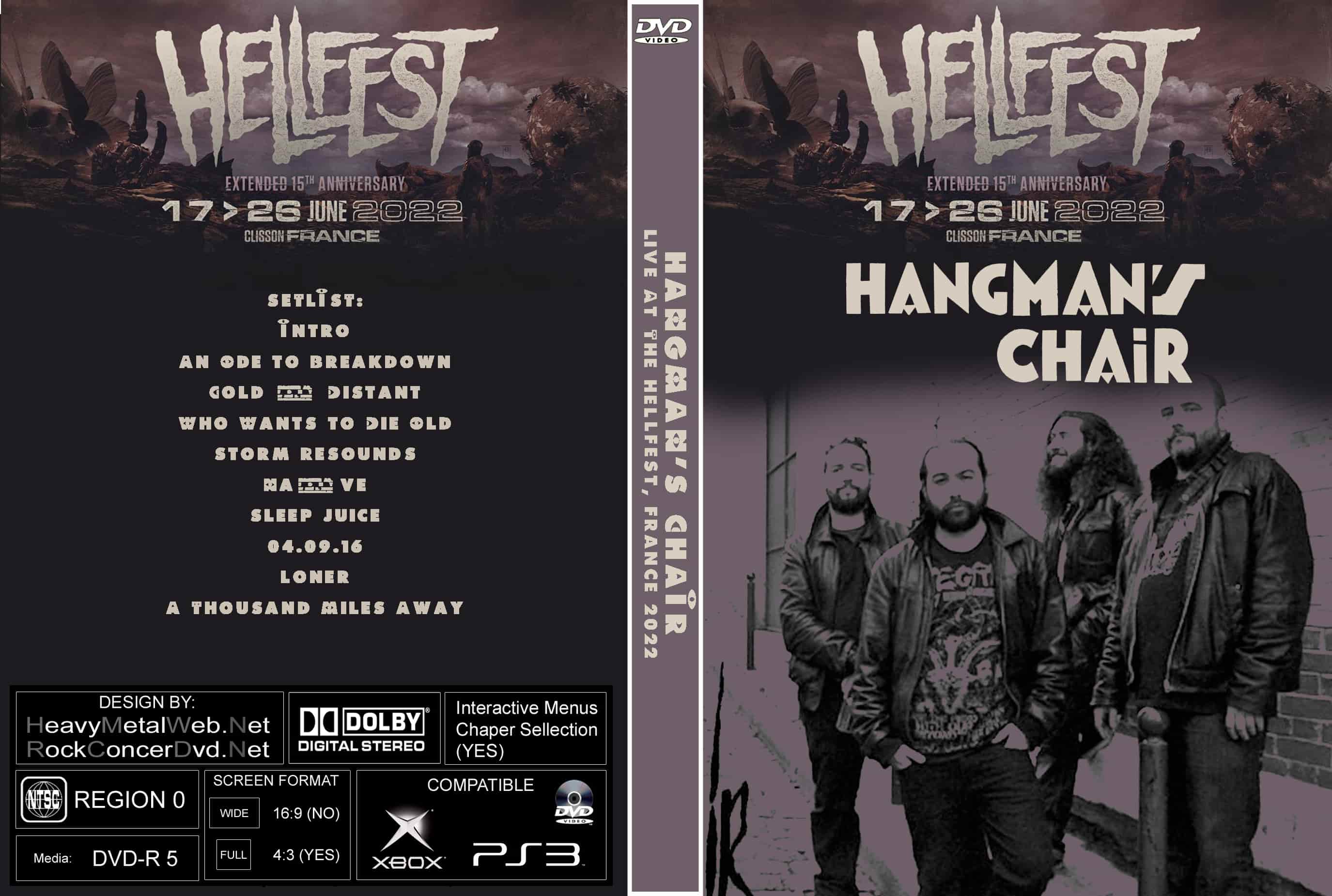 | HANGMAN'S CHAIR Live At The Hellfest, France 2022 DVD DVD Format: NTSC Source: Professional Shot (Multi Camera) Video Quality: Rating: 9.0 Menus: No Chapter Selection: Every 5 Min Widescreen: Yes HD: Yes Total Running Time: 57 Min. SETLIST: Intro An Ode to Breakdown Cold & Distant Who Wants to Die Old Storm Resounds Naïve Sleep Juice 04.09.16 Loner A Thousand Miles Away |