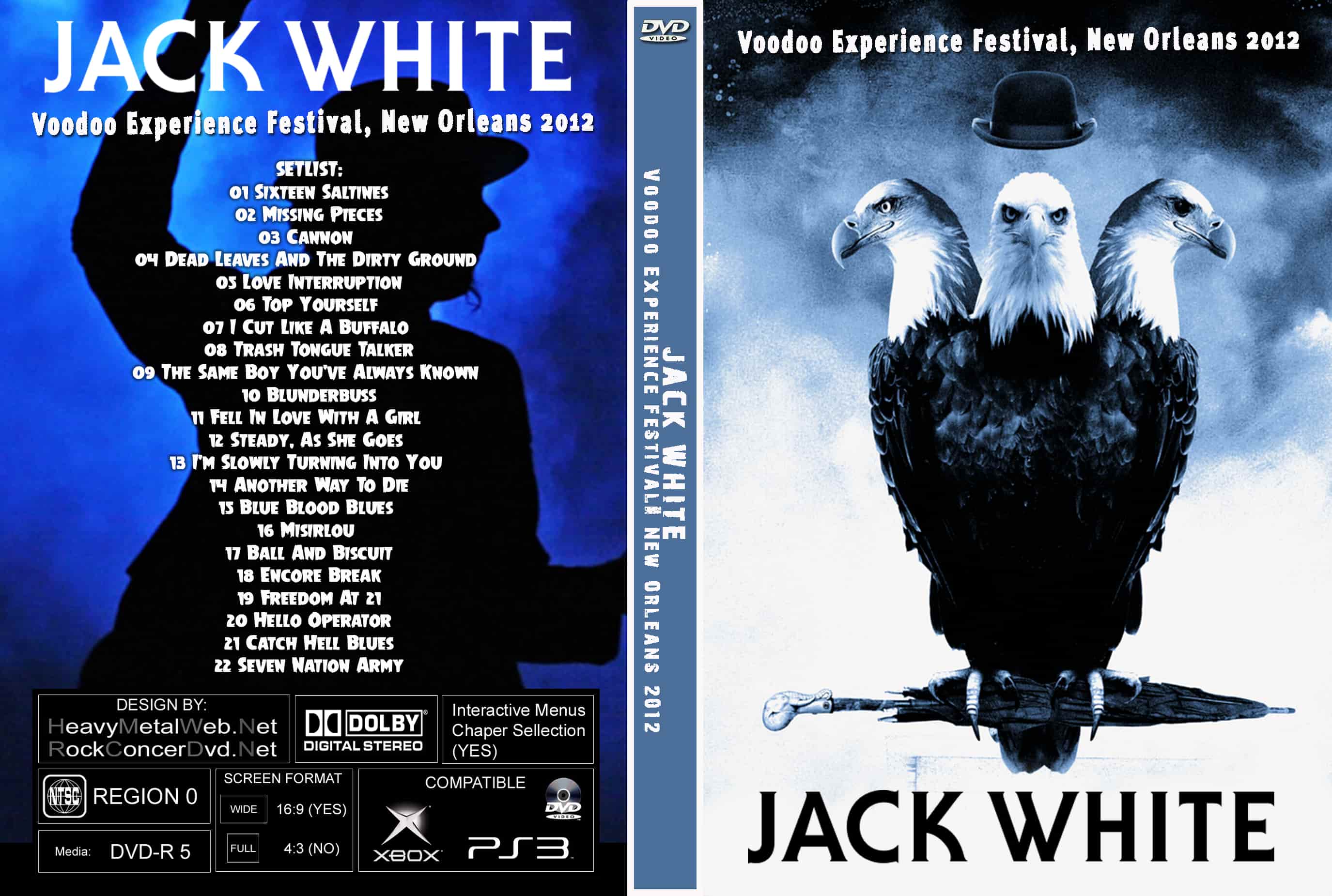 | JACK WHITE Voodoo Experience Festival, New Orleans 2012 DVD DVD Format: NTSC Source: Professional Shot (Multi- Camera) Video Quality: Rating: 9.0 Menus: No Chapter Selection: Every 5 Min. WideScreen: Yes HD: Yes Total Running Time: 87 Min. CONCERT REVIEW: Jack White, known for his distinctive sound and boundary-pushing approach to rock music, delivered an unforgettable performance at the Voodoo Experience Festival in New Orleans in 2012. By this point in his career, White had already established himself as a modern rock icon, both as the frontman of The White Stripes and with his solo work. This performance marked an exciting chapter in his solo career, blending his gritty, blues-infused rock with a wide array of influences that showcased his incredible versatility. The Voodoo Festival stage was set for an electrifying show, and White did not disappoint. The setlist was a well-balanced mix of tracks from his solo album “Blunderbuss” and classic hits from his past bands, including “Seven Nation Army” and “Icky Thump”. White’s commanding presence on stage, paired with his signature guitar riffs and fierce vocals, created an intense atmosphere that captivated the audience. One of the most striking elements of the show was White’s musicianship—his ability to seamlessly switch between guitar, piano, and even drums demonstrated his diverse skill set. His energy and intensity were palpable, never letting up throughout the set. The backup band, featuring some incredible musicians, helped bring out the depth of White’s sound, especially in songs like “Love Interruption” and “I'm Shakin’”, where the blend of blues, soul, and rock shone through. The crowd responded with enthusiasm, feeding off the electrifying vibe that White effortlessly created. Whether through his commanding guitar solos or his seamless integration of various musical genres, White brought his unique style to life in a way that was unforgettable. ================================================================================ =============================================================================================================== Clarification of the Concert Rating System: This rating is not based on the quality of the video recording or its production. Instead, it evaluates the live performance itself, focusing on key aspects that define the concert experience: |