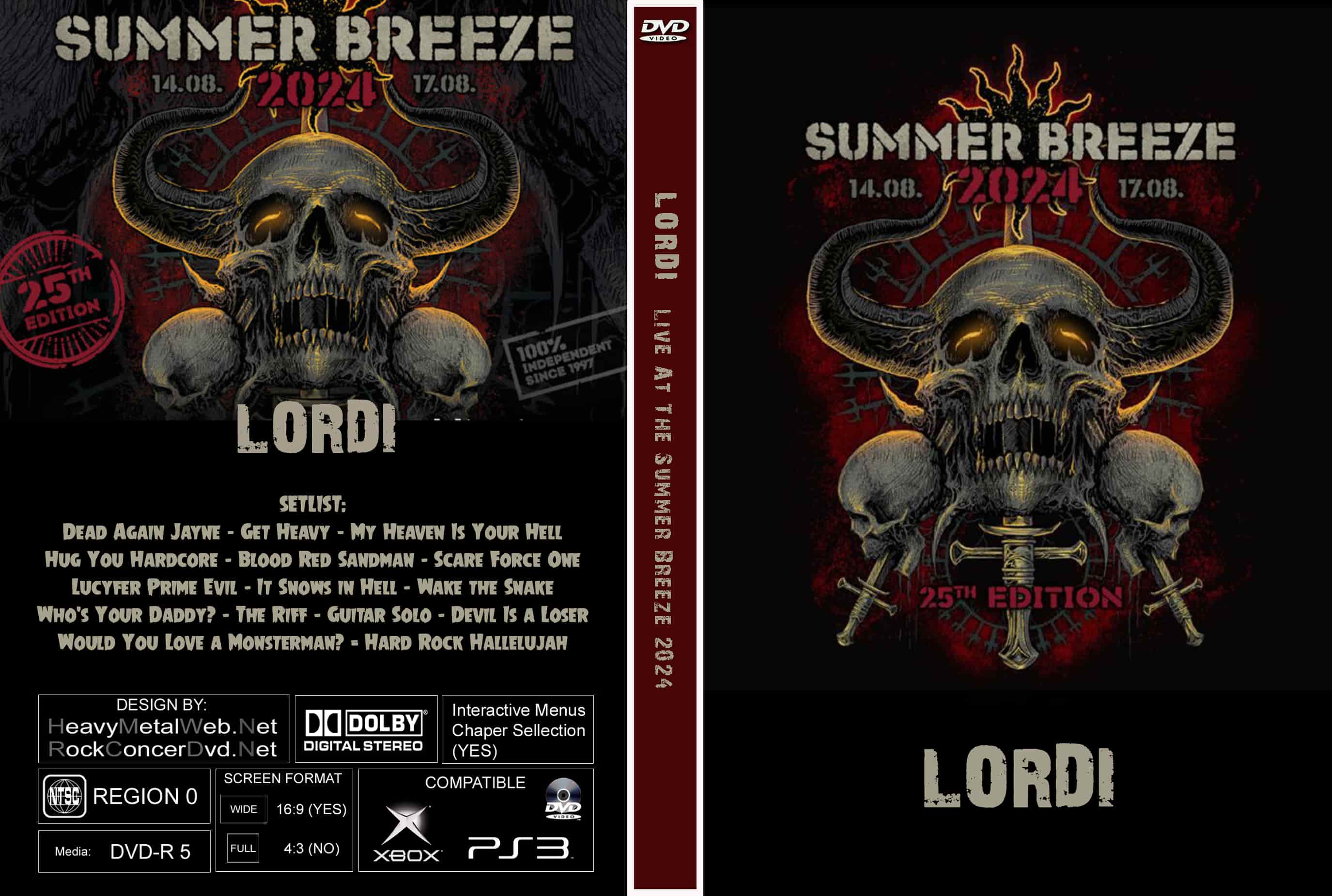 | LORDI Live At The Summer Breeze 2024 DVD DVD Format: NTSC Source: Professional Shot (Multi- Camera) Video Quality: Rating: 9.0 Menus: Yes Chapter Selection: Every 5 Min. WideScreen: Yes HD: Yes Total Running Time: 70 Min. SETLIST: Dead Again Jayne Get Heavy My Heaven Is Your Hell Hug You Hardcore Blood Red Sandman Scare Force One Lucyfer Prime Evil It Snows in Hell Wake the Snake Who's Your Daddy? The Riff Guitar Solo Devil Is a Loser Would You Love a Monsterman? Hard Rock Hallelujah |