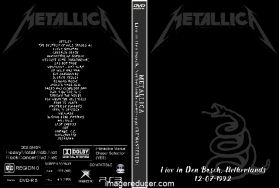 | METALLICA Live in Den Bosch, Netherlands 12-07-1992 (REMASTERED) DVD DVD Format: NTSC Source: Professional Shot (Multi Camera) Video Quality: Rating: 8.5 Menus: No Chapter Selection: Every 5 Min Widescreen: No HD: No Total Running Time: 155 Min. SETLIST: The Ecstasy Of Gold (fades in) Enter Sandman Creeping Death Harvester Of Sorrow Welcome Home (Sanitarium) Sad But True Wherever I May Roam Of Wolf And Man The Unforgiven Justice Medley Drinking Music Jason's Bass Solo Dazed and Confused Jam Kirk's Guitar Solo Through The Never For Whom The Bell Tolls Fade To Black Master Of Puppets Seek & Destroy Whiplash Nothing Else Matters Am I Evil? Last Caress One Damage, Inc. Motorbreath Breadfan |