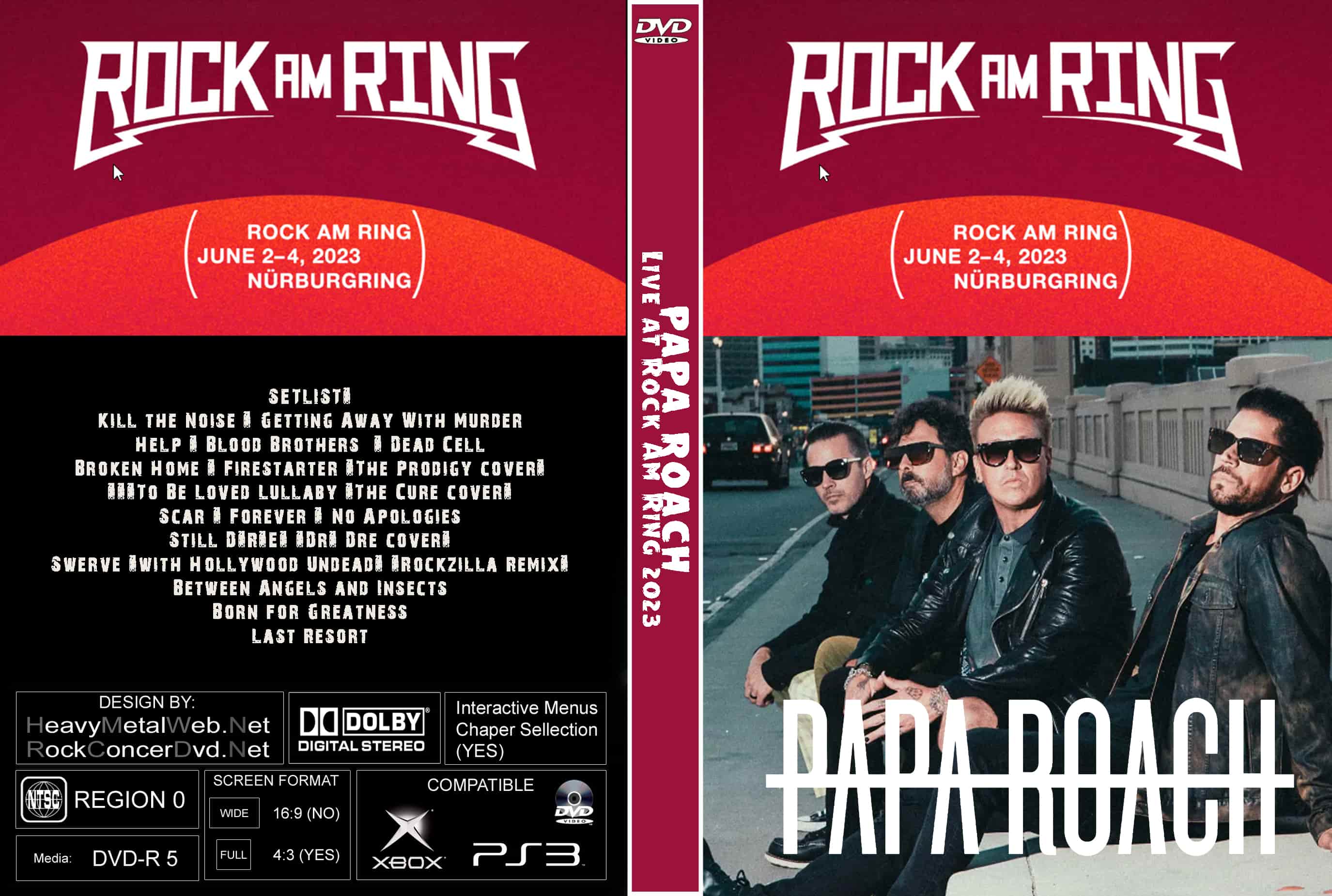 | PAPA ROACH Live at Rock Am Ring 2023 DVD DVD Format: NTSC Source: Professional Shot (Multi- Camera) Video Quality: Rating: 9.0 Menus: Yes Chapter Selection: Yes WideScreen: Yes HD: Yes Total Running Time: 68 Min. SETLIST: Kill the Noise Getting Away With Murder Help Blood Brothers Dead Cell Broken Home Firestarter (The Prodigy cover) ...To Be Loved Lullaby (The Cure cover) Scars Forever No Apologies Still D.R.E. (Dr. Dre cover) Swerve (with Hollywood Undead) (Rockzilla Remix) Between Angels and Insects Born for Greatness Last Resort |