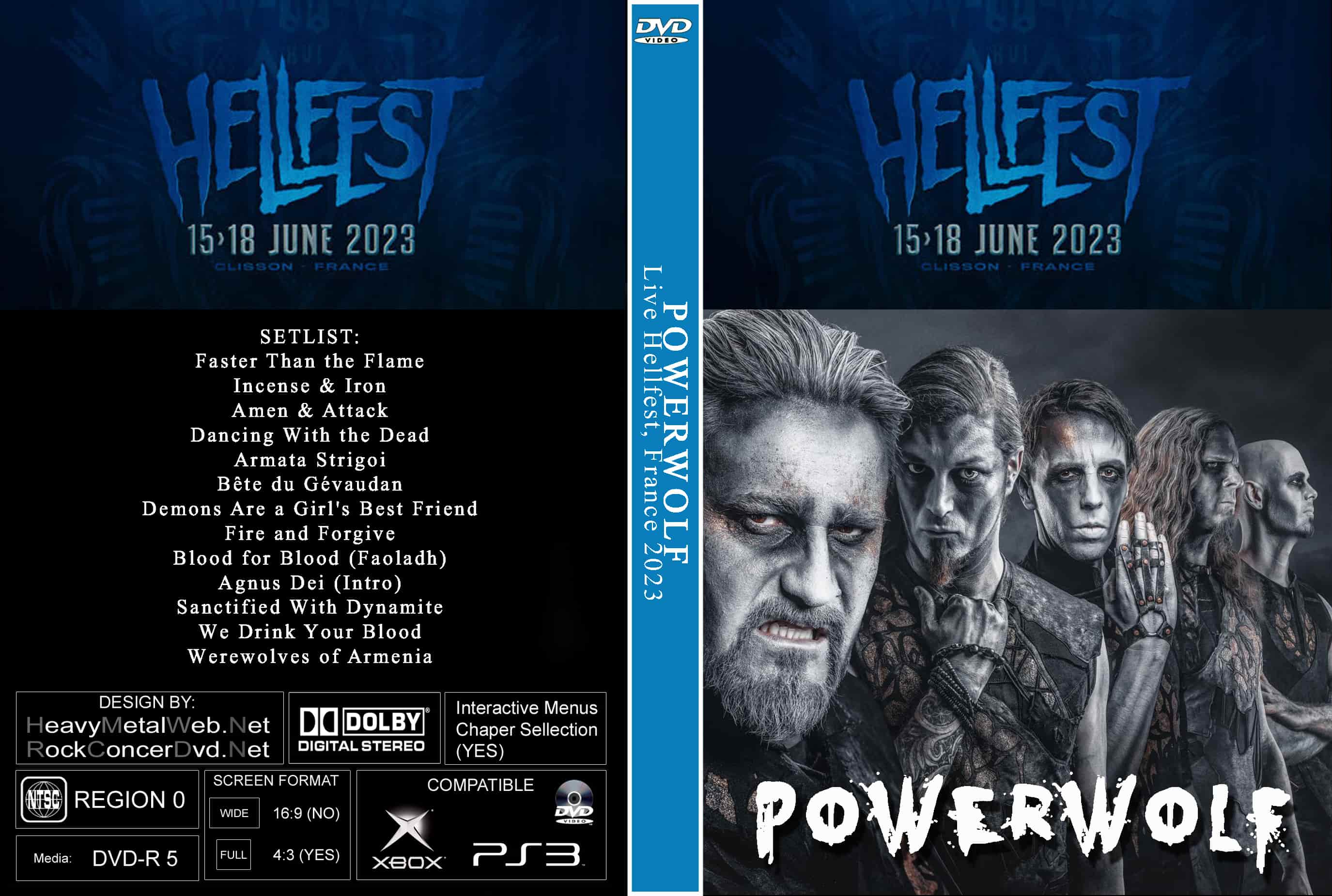 | POWERWOLF Live At The Hellfest, France 2023 DVD DVD Format: NTSC Source: Professional Shot (Multi- Camera) Video Quality: Rating: 9.0 Menus: No Chapter Selection: Skip Avery 5 Min WideScreen: Yes HD: Yes Total Running Time: 62 Min. SETLIST: Faster Than the Flame Incense & Iron Amen & Attack Dancing With the Dead Armata Strigoi Bête du Gévaudan Demons Are a Girl's Best Friend Fire and Forgive Blood for Blood (Faoladh) Agnus Dei (Intro) Sanctified With Dynamite We Drink Your Blood Werewolves of Armenia |