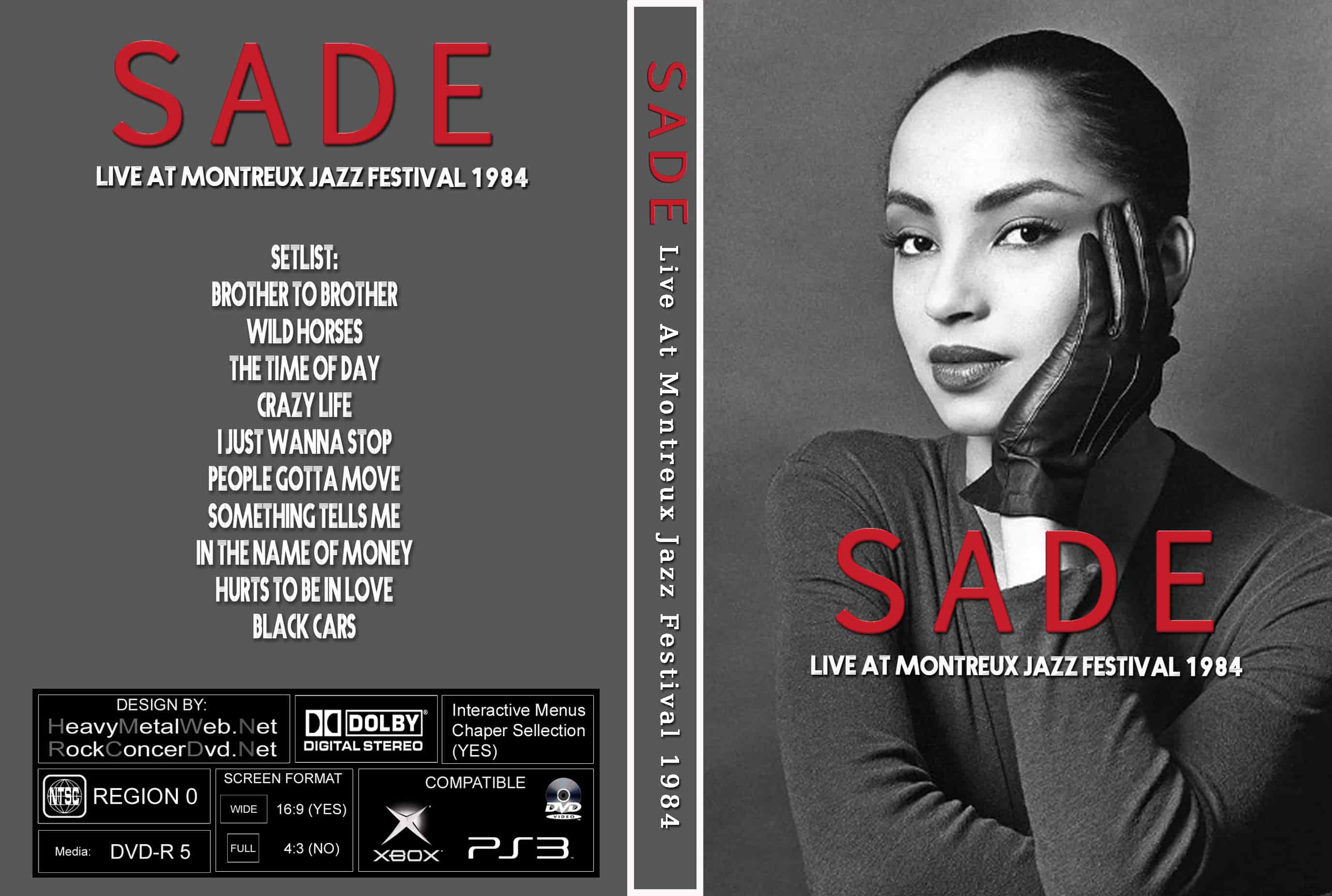 | SADE Live At Montreux Jazz Festival 1984 DVD DVD Format: NTSC Source: Professional Shot (Multi Camera) Video Quality: Rating: 8.0 Menus: No Chapter Selection: Every 5 Min Full Screen: Yes HD: No Total Running Time: 54 Min. SETLIST: Why Can't We Live Together Your Love Is King Hang On To Your Love Sally When Am I Going To Make A Living I Will Be Your Friend Cherry Pie Frankie's First Affair Smooth Operator Snake Bite Love Affair With Life (outro) |