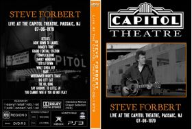 | STEVE FORBERT Live At The Capitol Theatre, Passaic, NJ 07-06-1979 DVD (UPGRADE REMASTERED) DVD Format: NTSC Source: Pro-Shot (Multi Camera) Video Quality: Rating: 8.5 Menus: Yes Chapter Selection: Every 5 Min. Full Screen: Yes HD: No Total Running Time: 64 Min. SETLIST: Goin' Down To Laurel Romeo's Tune Grand Central Station Complications Smoky Windows Settle Down What Kinda Guy Baby Midsummer Night's Toast Big City Cat The Oil Song Say Goodbye To Little Jo You Cannot Win If You Do Not Play |