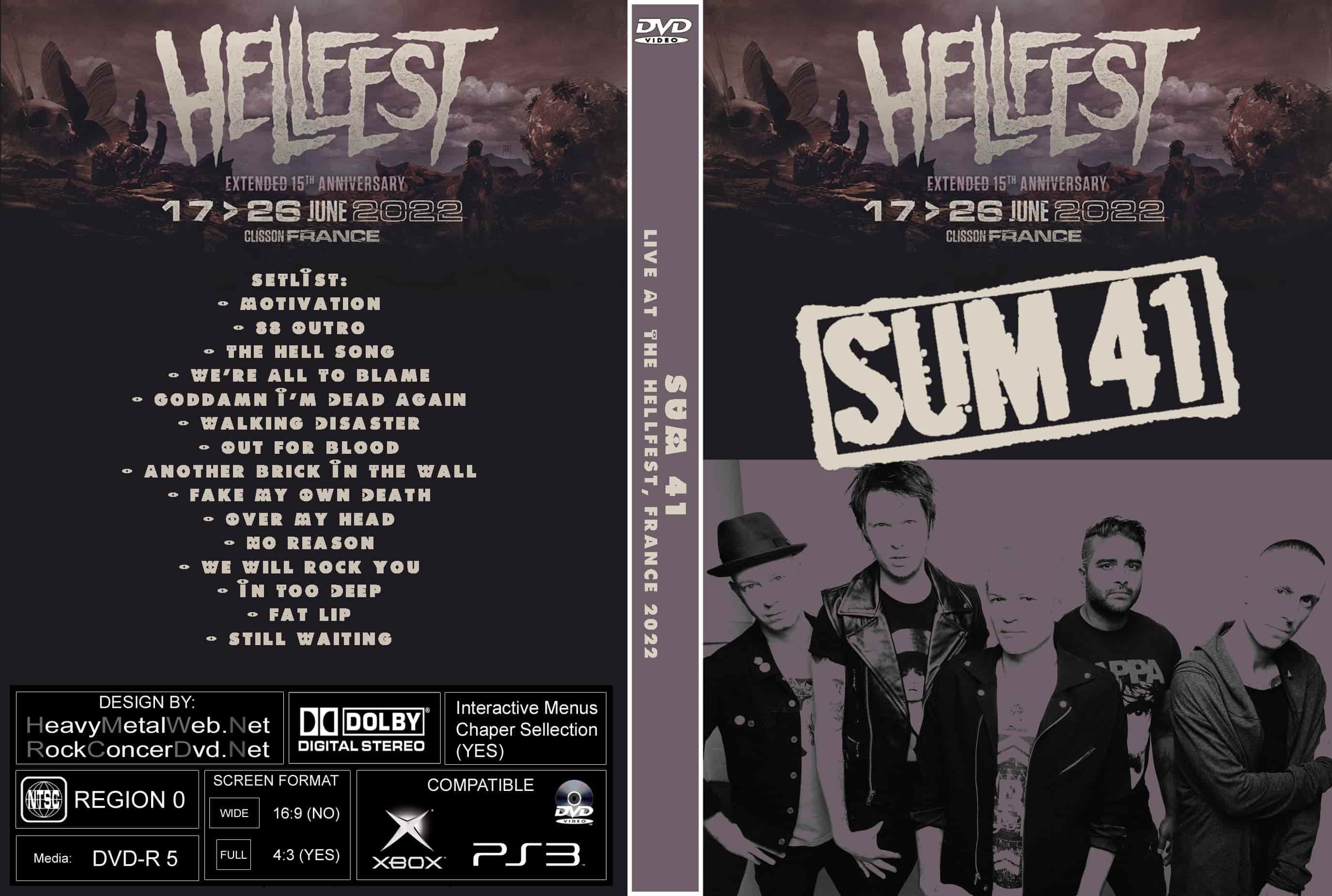 | SUM 41 Live At The Hellfest, France 2019 DVD DVD Format: NTSC Source: Professional Shot (Multi Camera) Video Quality: Rating: 9.0 Menus: No Chapter Selection: Every 5 Min Widescreen: Yes HD: Yes Total Running Time: 55 Min. - Motivation - 88 Outro - The Hell Song - We're All To Blame - Goddamn I'm Dead Again - Walking Disaster - Out For Blood - Another Brick In The Wall - Fake My Own Death - Over My Head - No Reason - We Will Rock You - In Too Deep - Fat Lip - Still Waiting |