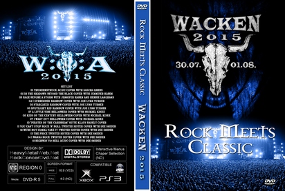| ROCK MEETS CLASSIC Live At Wacken Open Air, Germany 2015 DVD DVD Format: NTSC Source: Professional-Shot (Multi Camera) Video Quality: Rating: 9.0 Menus: No Chapter Selection: Skip Every 5 Min. Widescreen: Yes HD: Yes Total Running Time: 85 Min. SETLIST: 01 Thunderstruck (AC/DC Cover) (With Sascha Krebs) 02 In The Shadows (Beyond The Black Cover) (With Jennifer Haben) 03 Rage Before A Storm (With Jennifer Haben And Herbie Langhans) 04 I Surrender (Rainbow Cover) (With Joe Lynn Turner) 05 Stargazer (Rainbow Cover) (With Joe Lynn Turner) 06 Spotlight Kid (Rainbow Cover) (With Joe Lynn Turner) 07 A Little Time (Helloween Cover) (With Michael Kiske) 08 Kids Of The Century (Helloween Cover) (With Michael Kiske) 09 I Want Out (Helloween Cover) (With Michael Kiske) 10 "Pirates Of The Caribbean" Suite (Klaus Badelt Cover) 11 You Can't Stop Rock 'N' Roll (Twisted Sister Cover) (With Dee Snider) 12 We're Not Gonna Take It (Twisted Sister Cover) (With Dee Snider) 13 The Price (Twisted Sister Cover) (With Dee Snider) 14 I Wanna Rock (Twisted Sister Cover) (With Dee Snider) 15 Highway To Hell (AC/DC Cover) (With Dee Snider) |