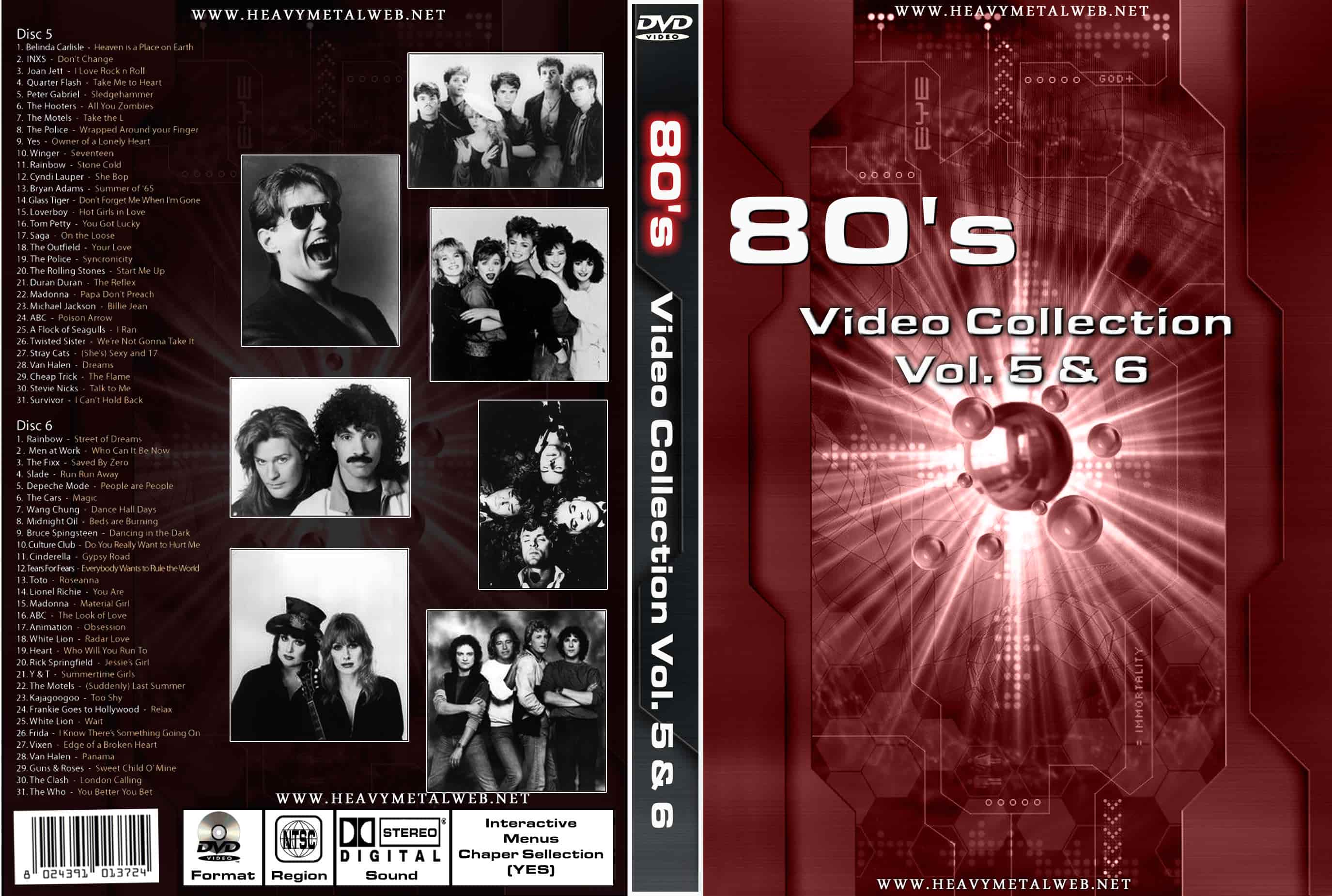 | 80's Video Collection Vol. 5 & 6 (2 DVDs) 62 Tracks With The Best 80s Videos DVD Format: NTSC Source: Professionla-Shot (Multi-Camera) Video Quality: Rating: 9.0 Menus: Yes Chapter Selection: Yes HD: No TRACKLIST: DVD 5 1. Belinda Carlisle - Heaven is a Place on Earth 2. INXS - Don't Change 3. Joan Jett - I Love Rock n' Roll 4. Quarter Flash - Take Me to Heart 5. Peter Gabriel - Sledgehammer 6. The Hooters - All You Zombies 7. The Motels - Take the L 8. The Police - Wrapped Around your Finger 9. Yes - Owner of a Lonely Heart 10. Winger - Seventeen 11. Rainbow - Stone Cold 12. Cyndi Lauper - She Bop 13. Bryan Adams - Summer of '65 14. Glass Tiger - Don't Forget Me When I'm Gone 15. Loverboy - Hot Girls in Love 16. Tom Petty - You Got Lucky 17. Saga - On the Loose 18. The Outfield - Your Love 19. The Police - Syncroncity 20. The Rolling Stones - Start Me Up 21. Duran Duran - The Reflex 22. Madonna - Papa Don't Preach 23. Michael Jackson - Billie Jean 24. ABC - Poison Arrow 25. A Flock of Seagulls - I ran 26. Twisted Sister - We're Not Gonna Take It 27. Stray Cats - (She's) Sexy and 17 28. Van Halen - Dreams 29. Cheap Tricks - The Flame 30. Stevie Nicks - Talk to Me 31. Survivor - I Can't Hold Back DVD 6 1. Rainbow - Street of Dreams 2. Men at Work - Who Can it Be Now 3. The Fixx - Saved By Zero 4. Slade - Run Run Away 5. Depeche Mode - People are People 6. The Cars - Magic 7. Wang Chung - Dance Hall Days 8. Midnight Oil - Beds are Burning 9. Bruce Springsteen - Dancing in the Dark 10. Culture Club - Do You Really Want to Hurt Me 11. Cinderella - Gypsy Road 12. Tears For Fears - Everybody Want to Rule the World 13. Toto - Roseanna 14. Lionel Richie - You Are 15. Madonna - Material Girl 16. ABC - The Look of Love 17. Animation - Obsession 18. White Lion - Radar Love 19. Heart - Who Will You Run to 20. Rick Springfield - Jessie's Girl 21. Y & T - Summertime Girls 22. The Motels - (Suddenly) Last Summer 23. Kajagoogoo - Too Shy 24. Frankie Goes to Hollywood - Relax 25. White Lion - Wait 26. Frida - I know There's Something Goin On 27. Vixen - Edge of a Broken Heart 28. Van Halen - Panama 29. Guns & Roses - Sweet Child O' mine 30. The Clash - London Calling 31. The Who - You Better You Bet |